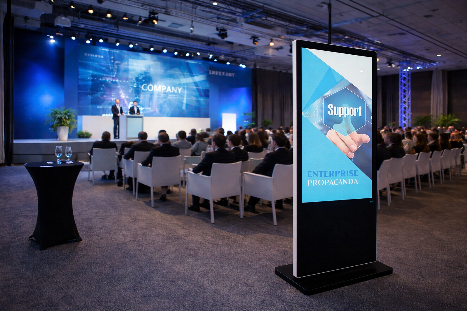 Acessórios para eventos corporativos – TV Para Estande – Microfone para coral – Totem com tv de 50″ – Totem Digital – Espaço instagramável – Backdrop com lona impressa – Caixa de som JBL – Cenografia – Kit balada – Conjunto de mesa bistrô – Separadores de filas – Rádios comunicadores – Frigobar – Climatizadores – Letras iluminadas – Bateria – Púlpito – Plataforma giratória – Poltrona giratoria – Notebook – Totem carregadores de celular – Mobiliário – Máquina de fumaça – Totem em mdf com placa de pvc – TV com suporte de chão.